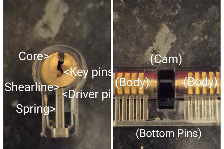 Our locksmith, Derek, based in Bold Heath, explains that euro cylinder locks, commonly found in UPVC and composite doors, are a type of pin cylinder lock. This design is quite straightforward: when you insert the correct key, it pushes down spring-loaded pins to the appropriate height, aligning them with what is known as the shearline, which allows the lock to open. Conversely, if the key is incorrect, the pins won't drop to the right height, failing to align with the shearline, and the lock will remain closed.